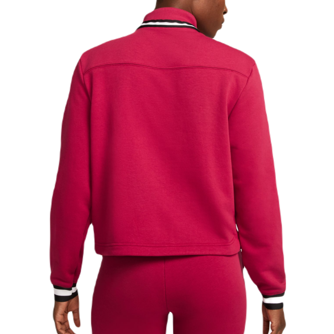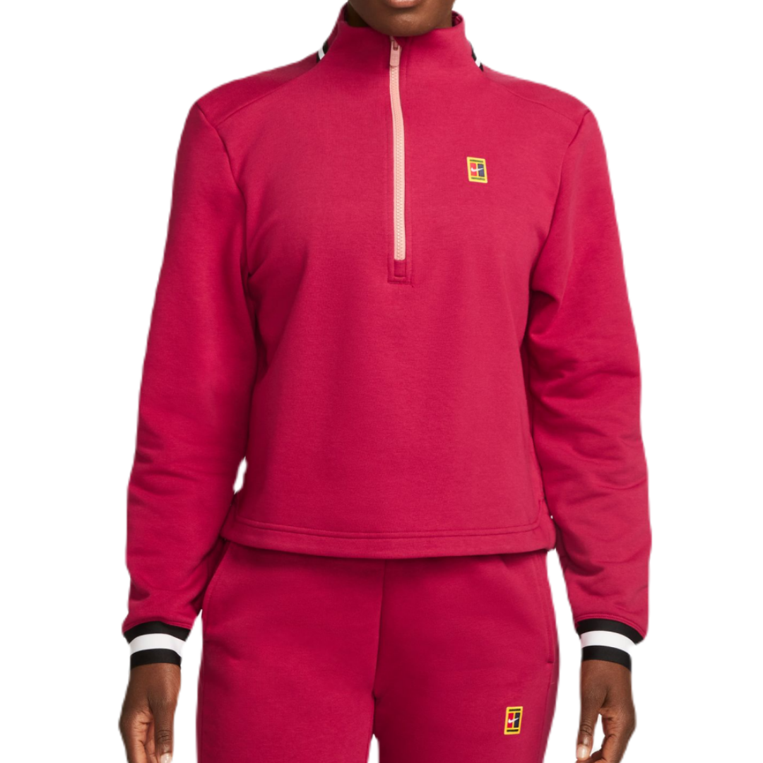 Женская толстовка Nike Court Dri-Fit Heritage Fleece — благородный красный/красная звездная пыль Легкая, тонкая модель укороченного кроя. Застегивается на молнию длиной 1/2 длины, имеет приподнятый эластичный воротник. Рукава и низ толстовки отделаны эластичным материалом, обеспечивающим хорошую посадку и высокий комфорт при ношении. Слегка эластичный материал адаптируется к движению, а дополнительные разрезы по бокам гарантируют свободу во время активности. Высокое качество изготовления и используемых материалов по технологии DRI-FIT.
